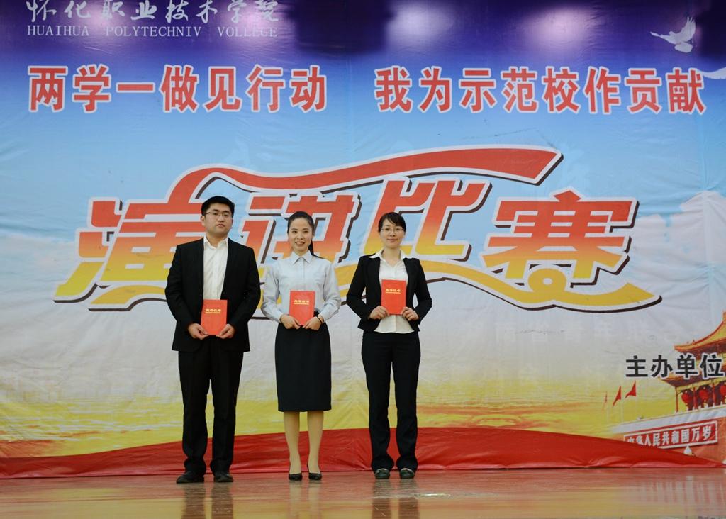 为迎接省级示范校验收,推进“两学一做”活动深入开展,积极营造一个良好的学习氛围,增强学院凝聚力,我院于6月3日下午在大会议室举行了教职工“‘两学一做’见行动,我为示范校作贡献”演讲比赛,活动由学院工会、宣传部、评建办联合主办,党委书记胡佳武、院长王聪田等院领导出席了本次活动,全体教职员工参与见证了比赛的全过程,张珊老师和毛桢老师担任本次比赛的主持。