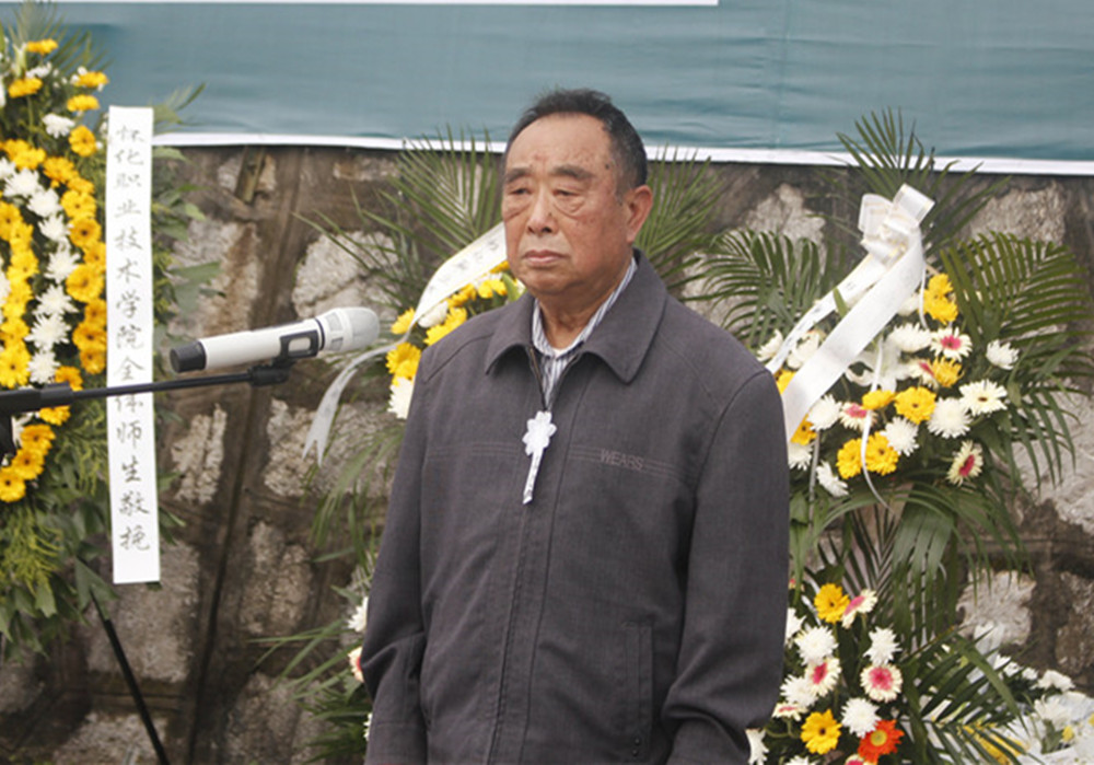 离退休代表黄渊基老师发言,我们悼念袁老师就是要永远记得袁隆平精神,发扬光大隆平精神。杂交水稻从这里发源,我们一定要牢记袁老师遗志,将我们学校办成一流职院,让我们的学校像杂交水稻一样誉满中华。