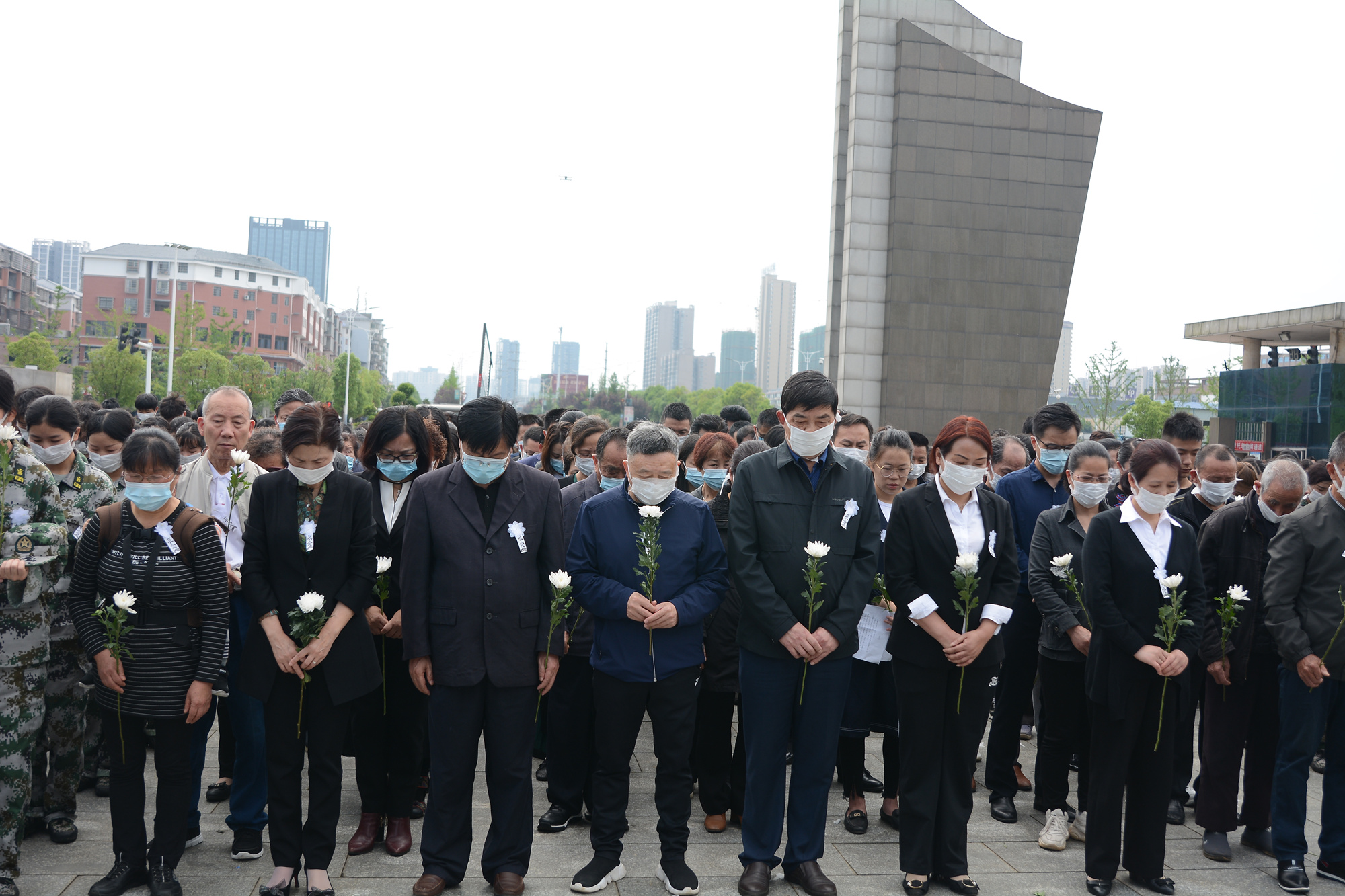 10时,活动正式开始,全体人员神情凝重,双手垂立,低头默哀。