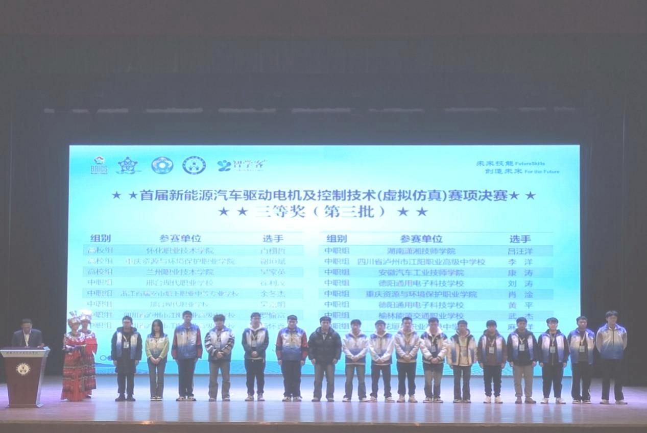 近日,我校师生再获多项技能大赛奖项。学校机械与车辆工程学院汽车检测与维修技术专业的肖栩哲同学荣获2024“一带一路”暨金砖国家技能发展与技术创新大赛首届新能源汽车驱动电机及控制技术(虚拟仿真)赛项全国总决赛三等奖。机械与车辆工程学院教师吴金娥、张波分别荣获第二届“强国杯”技术技能大赛自动驾驶仿真测试技术赛项全国总决赛职工组二等奖、三等奖;汽车检测与维修技术专业陈光友同学荣获学生组三等奖。