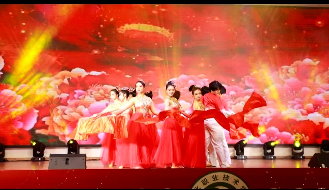 舞台上,歌曲、舞蹈、小品、乐器演奏等各类节目轮番上演,精彩纷呈。流行歌曲《蓝莲花》展现了同学们的青春活力与时尚气息;民族舞蹈《黑颈鹤之舞》优美典雅,舞者们用灵动的舞步演绎出民族文化的独特魅力;舞台剧《追光者》鼓励同学们勇敢摘下面具,追寻生命的那束光,发现真正的自我;小品《碰瓷》幽默风趣,贴近生活的情节引发台下观众的阵阵笑声与共鸣,将晚会气氛推向高潮。最后,晚会在舞蹈《向快乐出发》中落下帷幕。