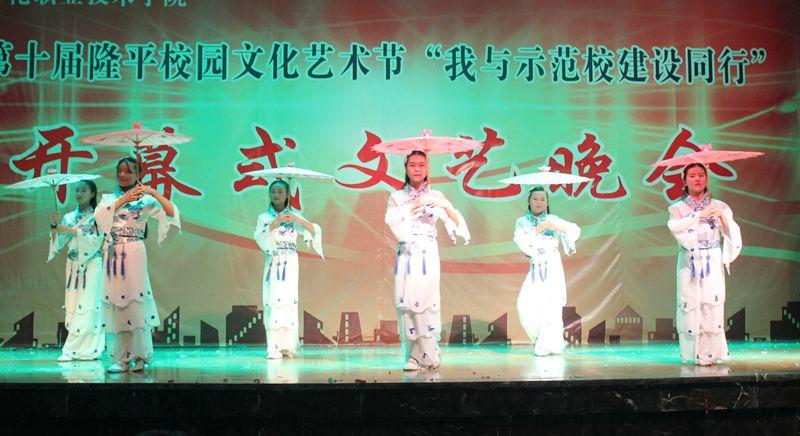 动物科技系穿着藏族服装表演的舞蹈《青春踢踏舞》别开生面,拉开了晚会的序幕。晚会上的节目多姿多彩,形式多样,有舞蹈,朗诵、小品,武术表演等十四个节目。舞蹈表演青春飞扬,小品表演诙谐幽默,诗歌朗诵饱满深情,武术表演刚柔并济。同学们用青春、用活力、用激情展现自己的特长,展示自己的才艺,晚会一次次达到高潮,赢得了阵阵掌声。最后商贸管理系的舞蹈《致青春》、歌伴舞《美丽之路》分别获得本次晚会第一名、第二名,人文科技系的舞蹈《摇摆女儿红》获得第三名,